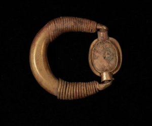 وتضم مجموعة الحلي الذهبية المكتشفة مؤخرا: 3 خواتم من أحدهم مزين بصورة من المعبود المصري القديم “بس” إله المرح، والثاني مزين برموز هيروغليفية، يمكن أن تقرأ “سات نبت تاوي”، ومعناها “بنت سيدة الأرضين”، بالإضافة إلى قلادة صغيرة من حبات الذهب المفرغ.