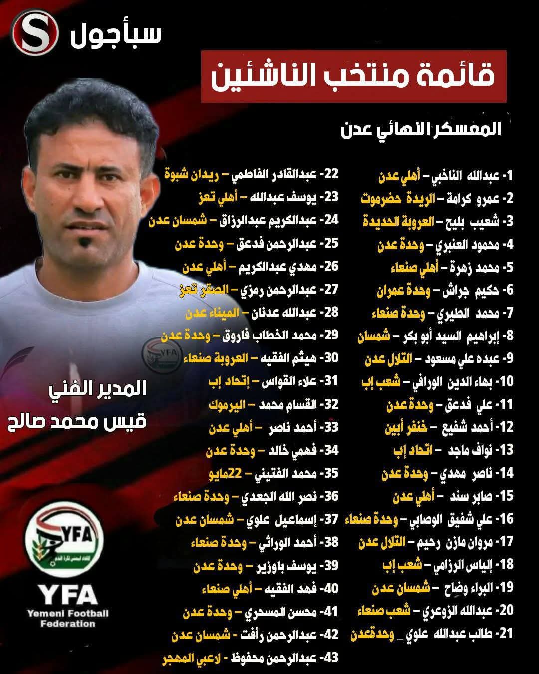 كل الشكر والتقدير للمدرب الوطني للناشئين *قيس محمد صالح* على الثقة التي منحها لهذا اللاعب الموهوب، الذي يثبت يومًا بعد يوم أنه موهبة كروية صاعدة تمتلك مستقبلًا واعدًا في عالم كرة القدم.